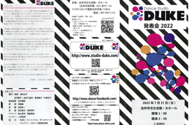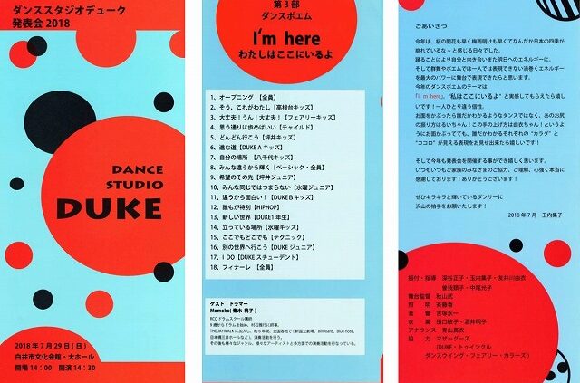5月下旬から6月より発表会に向けて、DUKE独自のプログラム、ダンスポエムの通し稽古を行います。約40分の大作を3歳〜大人クラスまでスタジオ全体でデュークの世界観を作り上げていきます。
