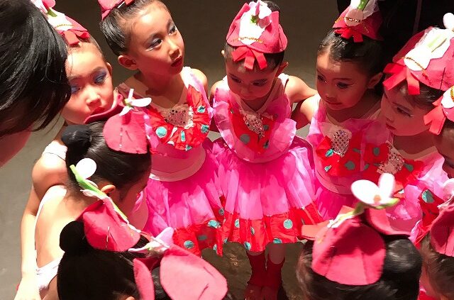 自分の出番の把握からお姉さんクラスはチビちゃんクラスの面倒や小道具のセッティングなど、やらなければいけない事が沢山あります。