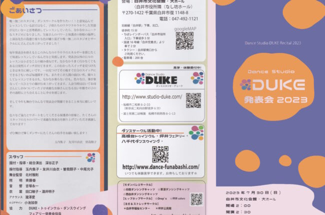 1年間練習してきた小品群舞から、ソロデュオ、ポエムを、そしてモダンバレエとヒップホップダンスという2つのジャンルを発表します。